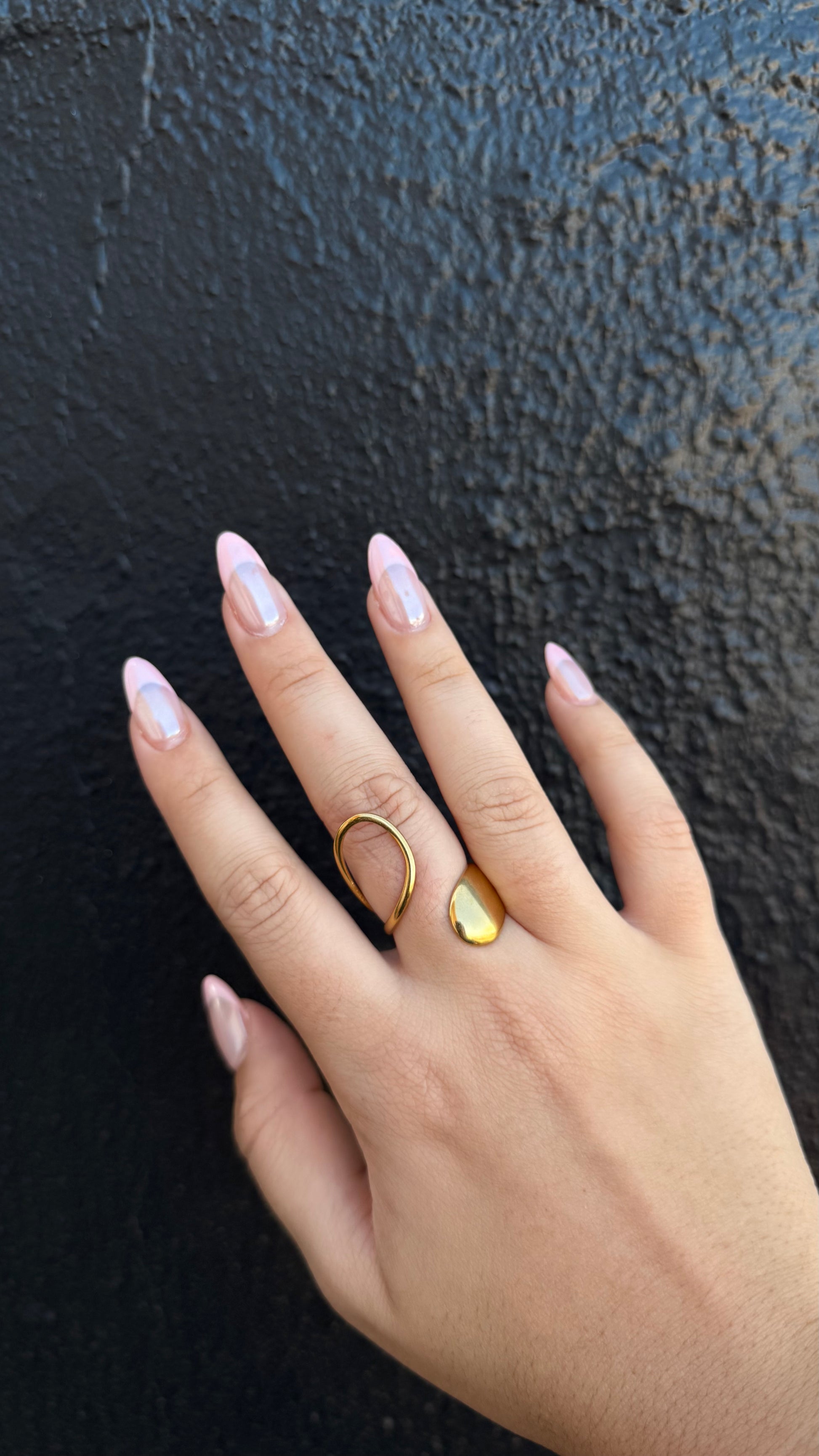 Esta sortija dorada simboliza energía positiva y buena vibra. Abrazo de Sol ilumina tus manos con su brillo suave y diseño moderno.