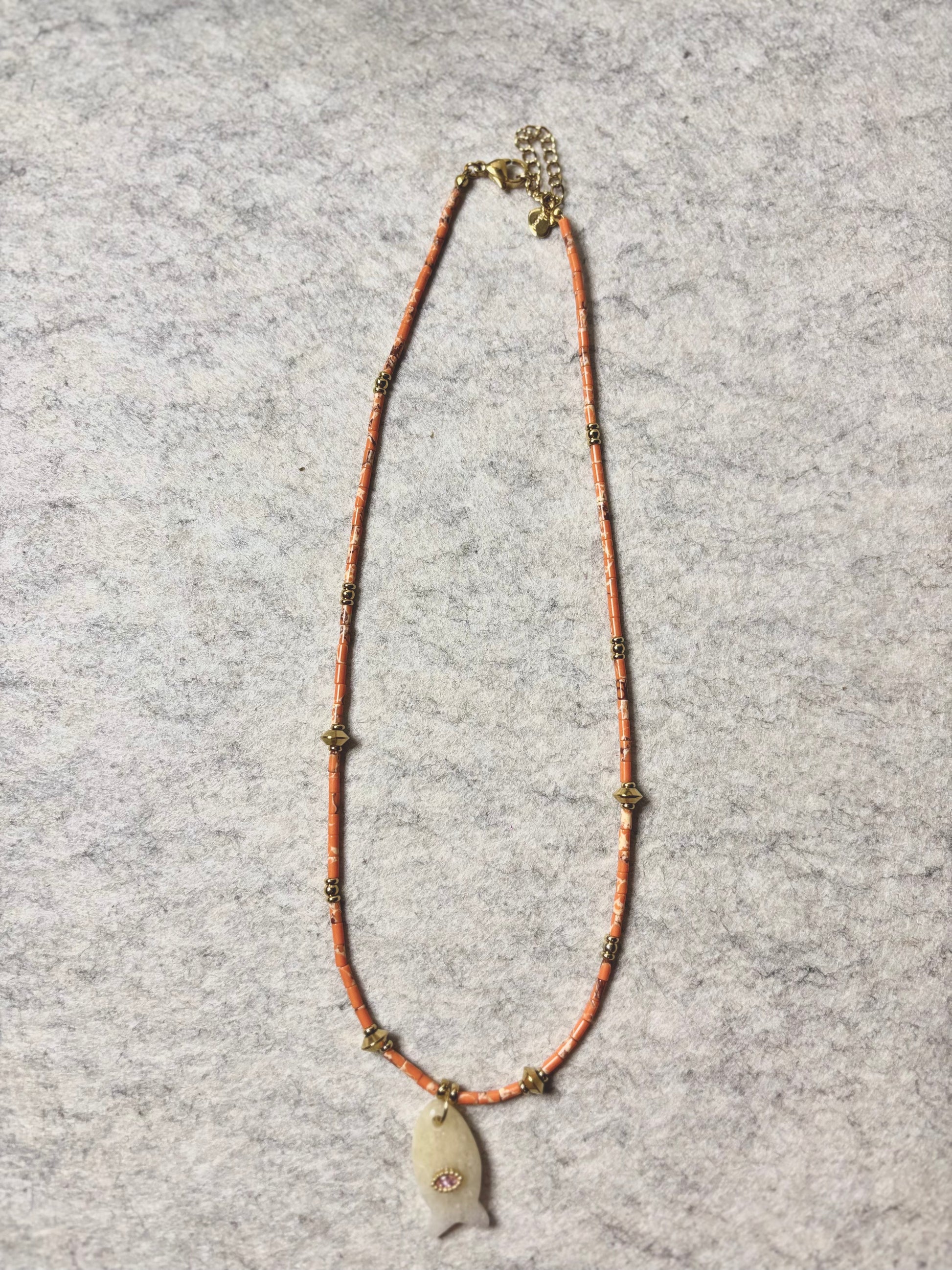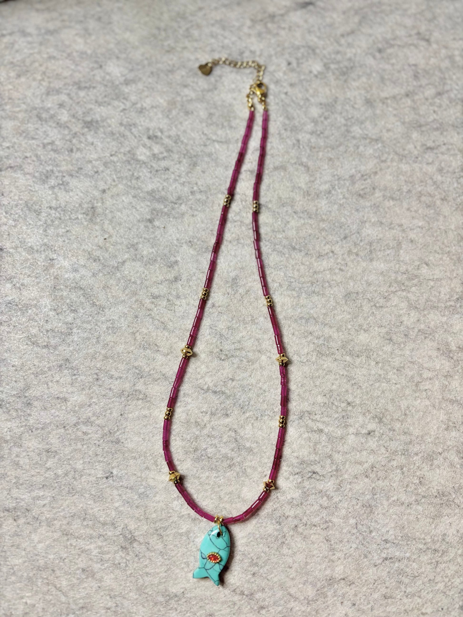 FISHY GLAM NECKLACE - COLLAR DE PIEDRAS DE COLORES CON CHARM DE PESCADO EN CRISTAL