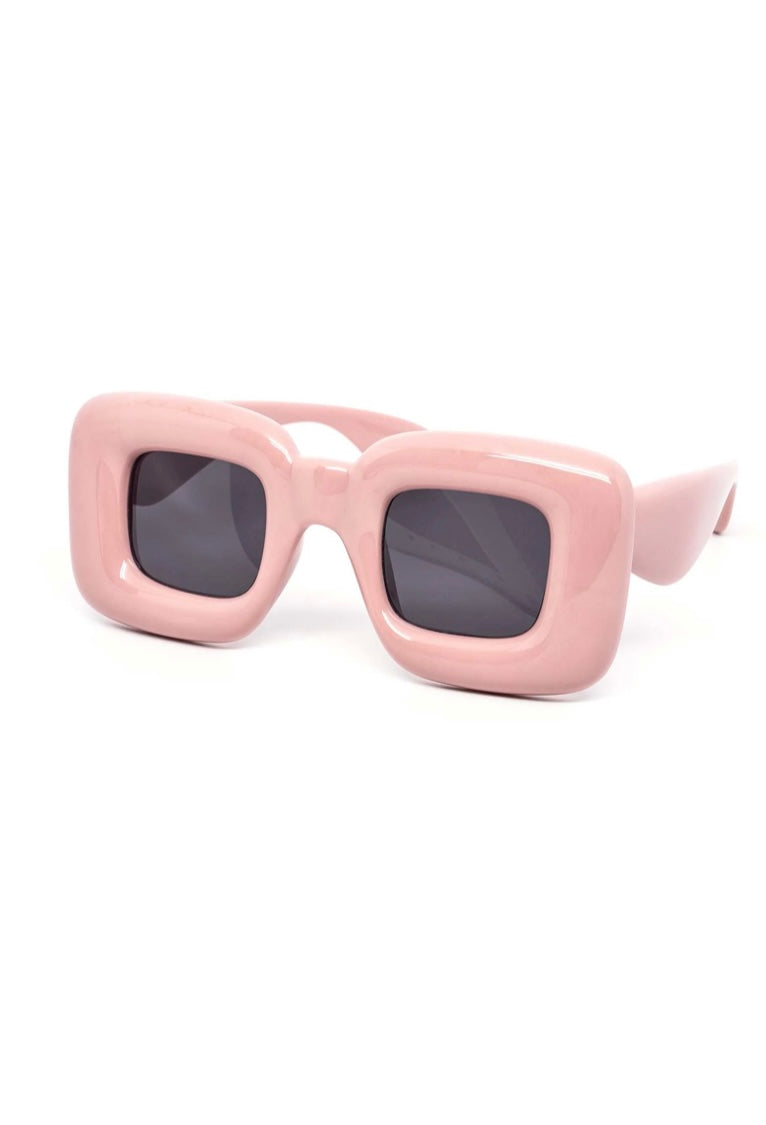 High fashion squiggly puffy design with assorted color frames and dark lens.