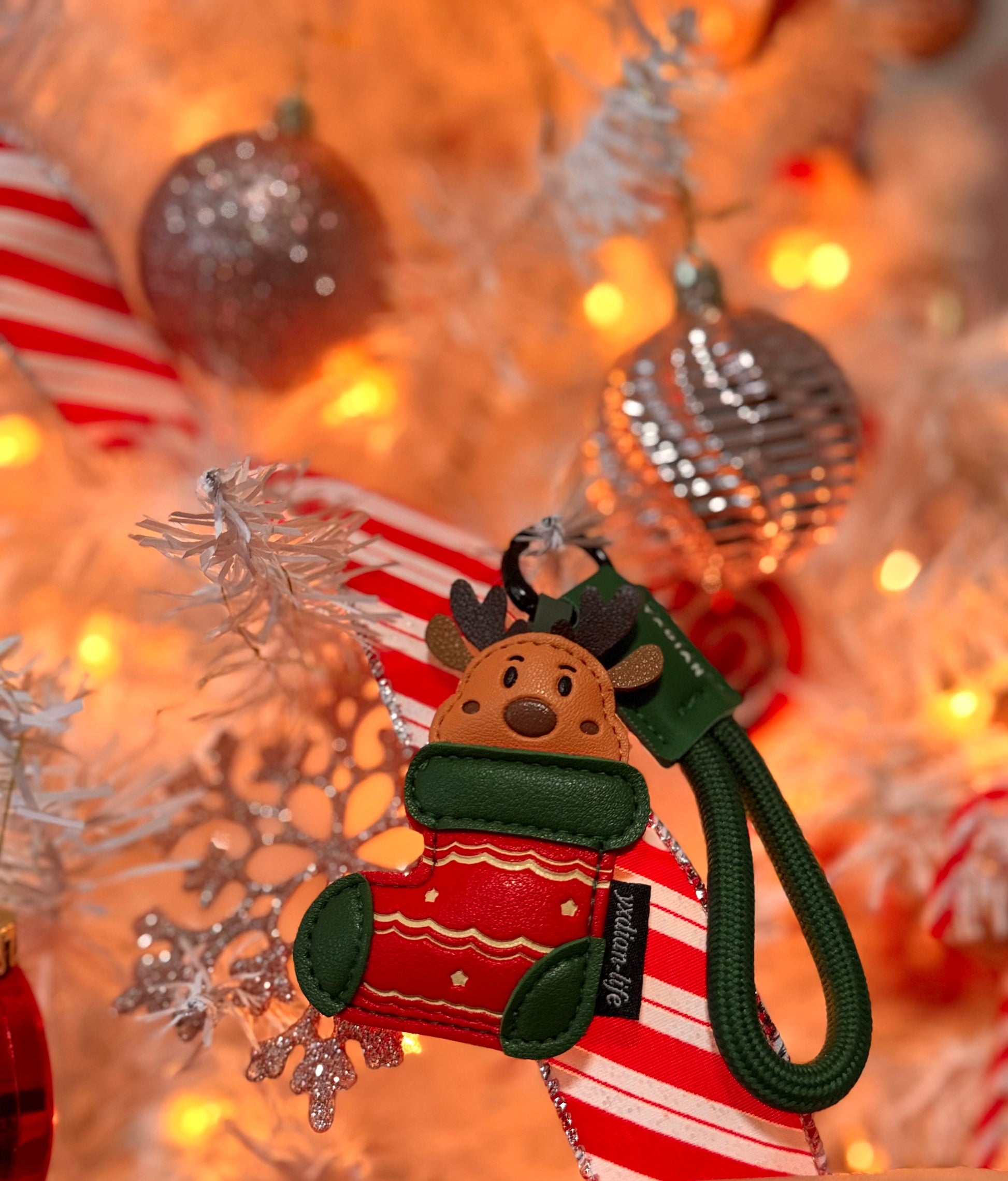 Inspirado en el espíritu travieso y encantador de la Navidad, el Rudolf Charm es el accesorio perfecto para quienes aman los detalles con personalidad. Su nariz roja y acabado brillante le dan el toque cute que toda cartera necesita.